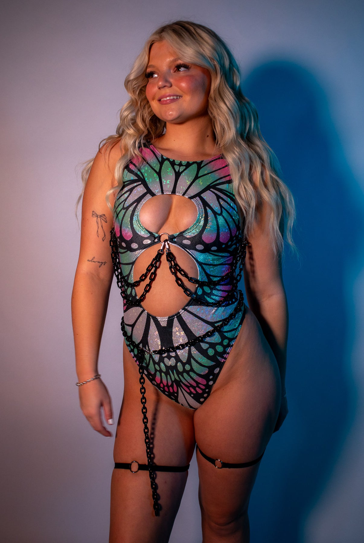 Looking for rave outfits that actually feel like “you”? Build your look from our lineup of bodysuits, bra tops, booty shorts, chaps, fishnets, mesh layers, and more. Turn up the color with holographic and reflective pieces that light up under lasers or keep it sleek with darker, techno-ready sets, thigh-high socks, and platform boots. Mix trippy patterns with rhinestone details or sheer mesh for photo-ready fits. However you move, this is rave wear that keeps up.