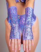 Let your hands shine as bright as the rave with these Cobalt Sparkle Gloves! A shorter version of our Arm Sleeves! These gloves feature and over the wrist design with thumb holes. The top of the gloves sit comfortably on the forearm just below the elbow.