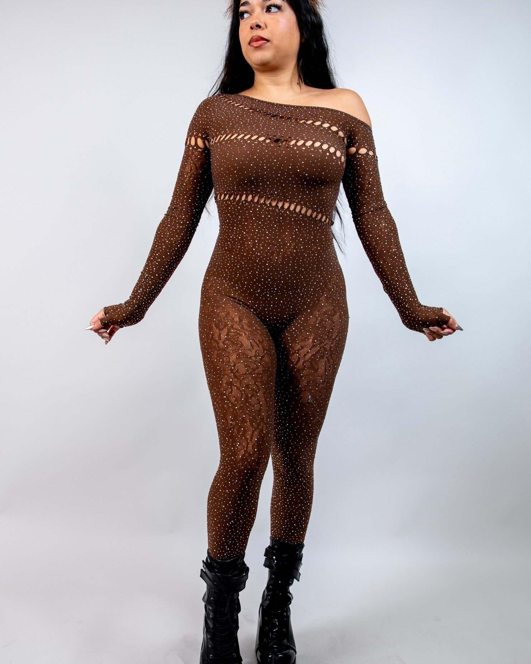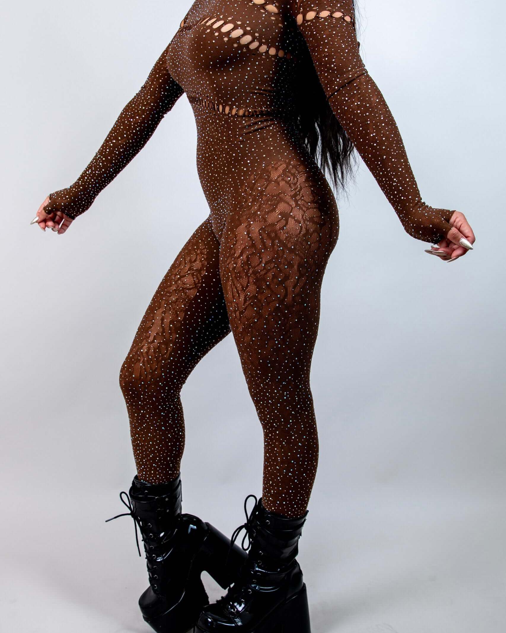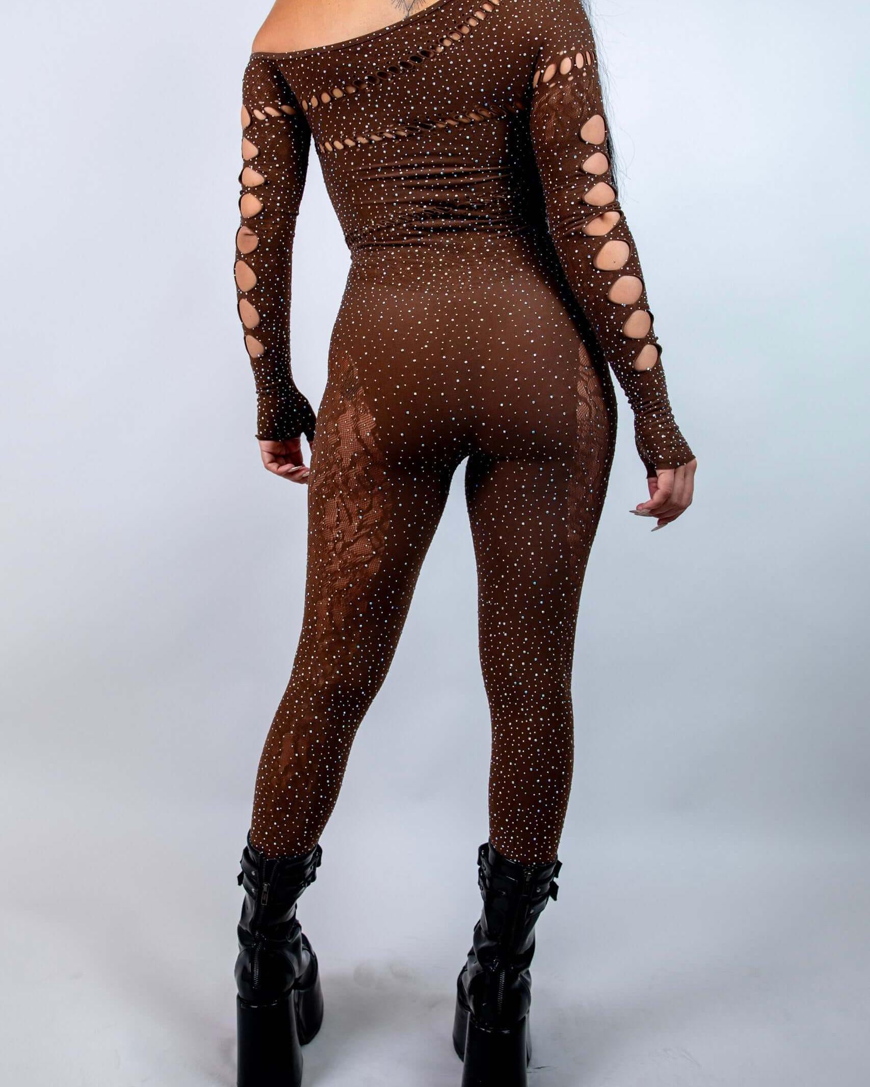 - Rhinestone Fishnet Jumpsuit