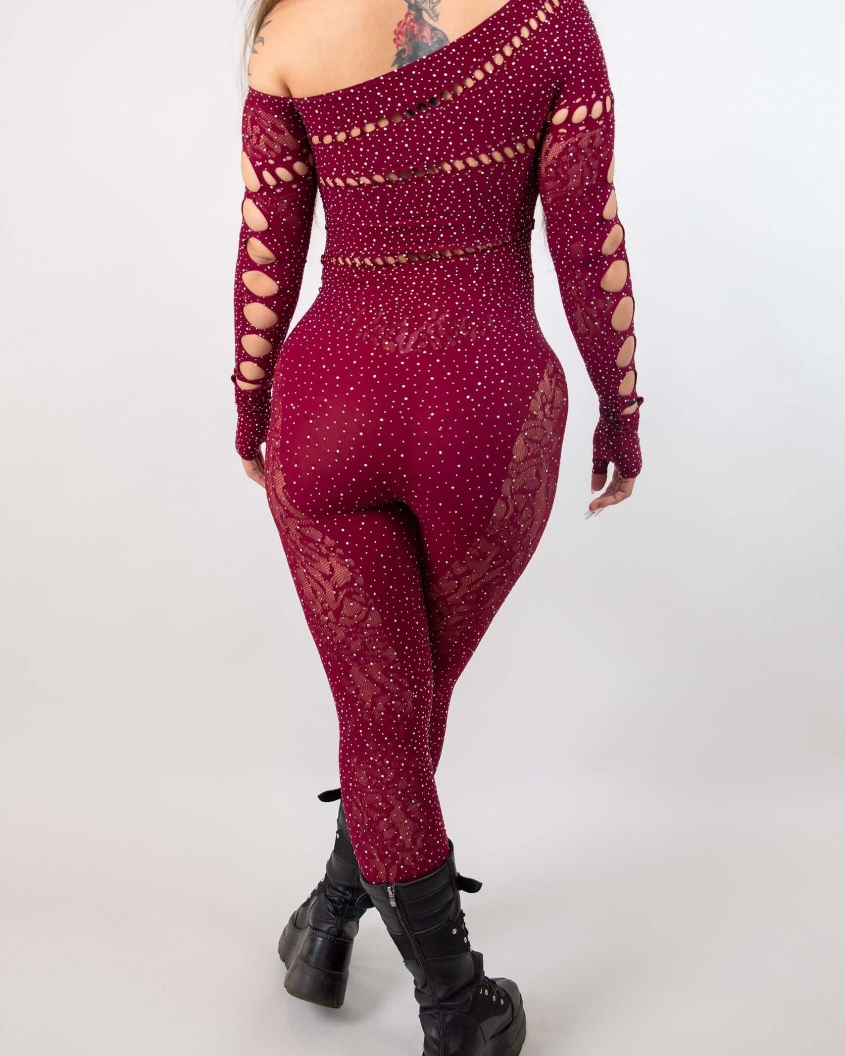 The Camilla Rhinestone Off the Shoulder Jumpsuit - Burgandy