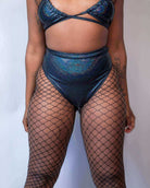 Amplify your rave game with our Midnight High Waisted Bikini Bottoms! The mesmerizing glittery black material and high waist cut will make you the star, while the full hip coverage and cheeky back ensure a comfy and flattering fit. Ideal for endless dancing.