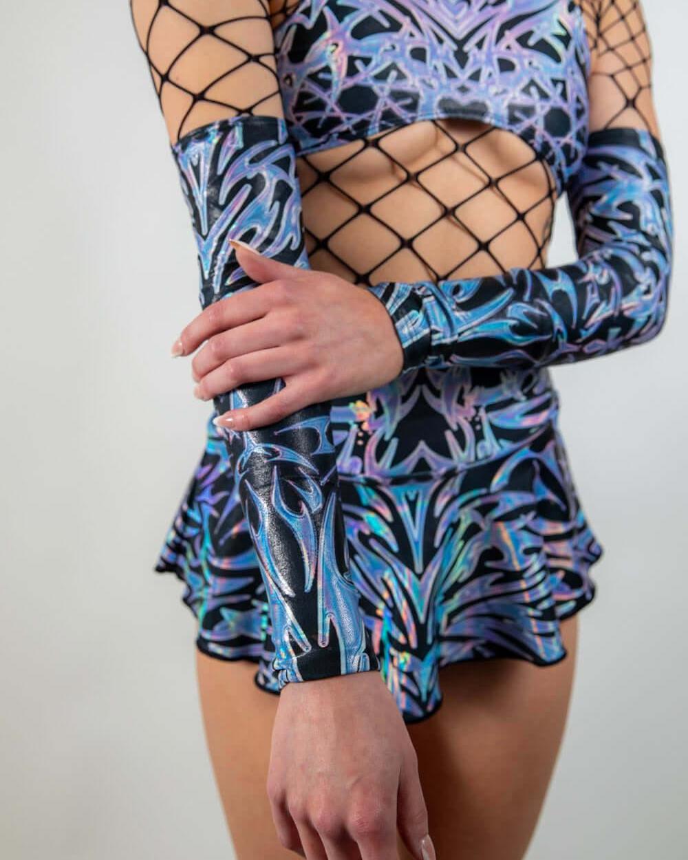 Experience a futuristic vibe with our Chromium Arm Sleeves. These holographic sleeves feature a mesmerizing cyber sigalism design that will make you stand out. Elevate any outfit with this versatile accessory that adds a touch of edginess and style. Get ready to turn heads and make a statement!
