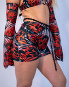 The Lacewing High Waisted Shorts are unapologetically bold—designed for the ones who haunt the dance floor. This piece features our red lacewing print, a hypnotic and dangerous twist on butterfly wings with blood-drip symmetry and inky black contrast. The holographic finish catches the light just enough to keep all eyes on you, while the curve-hugging silhouette gives off serious main character energy.