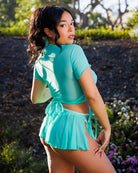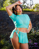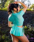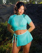 Get festival-ready in this Mint Mesh Baby Tee, where bold style meets breathable comfort. The cropped silhouette and cap sleeves scream rave vibes, while the structured high neckline and smooth merrow hem add polish to your look. Lightweight mesh fabric strikes that perfect balance—transparent enough to tease, substantial enough to feel confident. Mix and match with your go-to rave pieces or pasties for endless layering possibilities. Grab your usual size for a fitted feel or size up to rock a relaxed, laid-back vibe that lets you move freely all night.