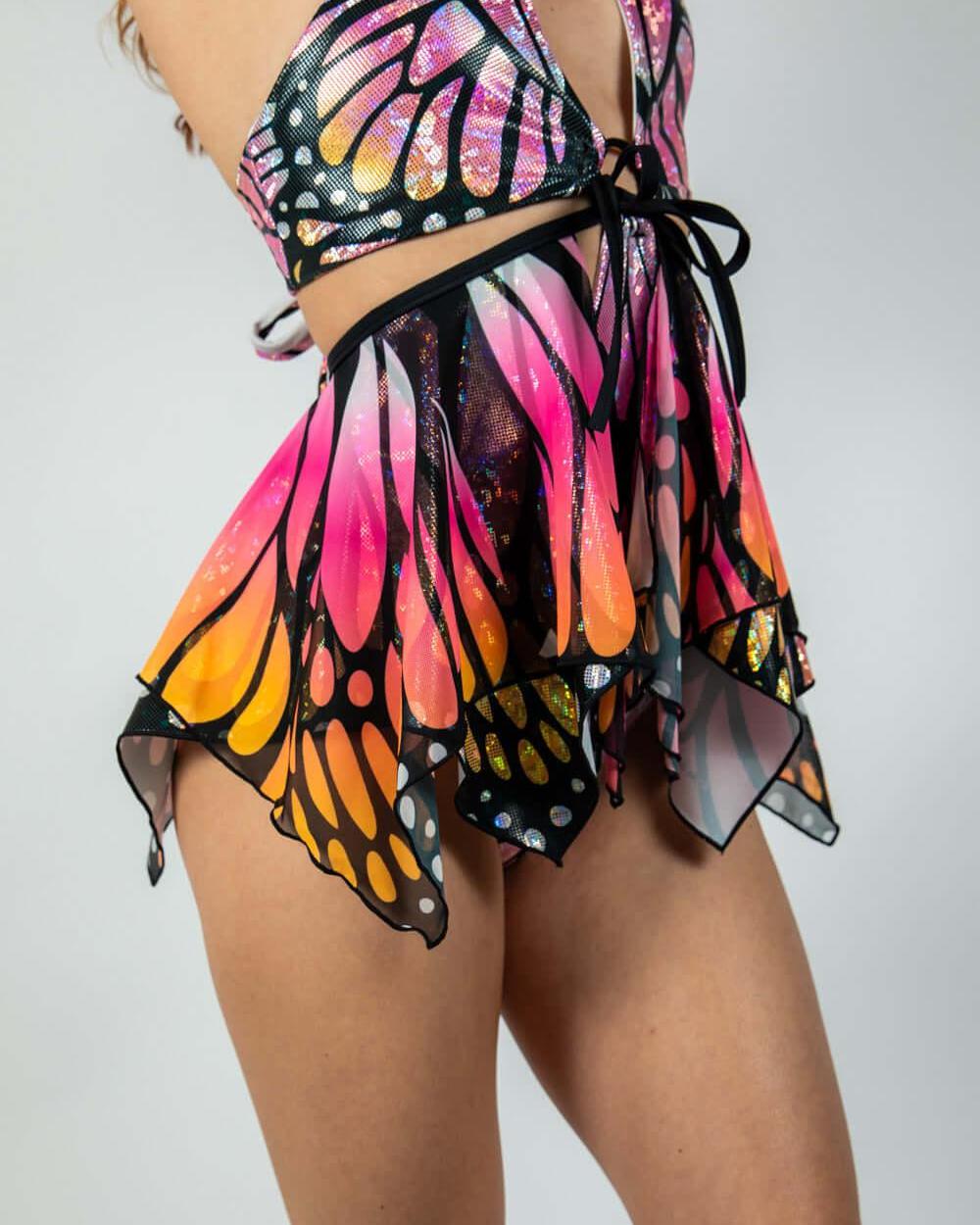 Get in touch with your inner fairy with our Monarch Fairy Skirt! This enchantingly UV reactive creation showcases a dual-layered layout that draws inspiration from stunning butterflies. Be ready to take flight in fashion with this playful skirt!