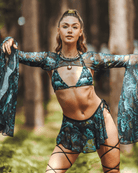 Get ready to rave in style with the Faewood Strappy Bikini Top! This unique top features a whimsical enchanted forest landscape that will have you standing out from the crowd. The strappy design adds a touch of edginess, making it perfect for any festival or party. Get ready to dance the night away!