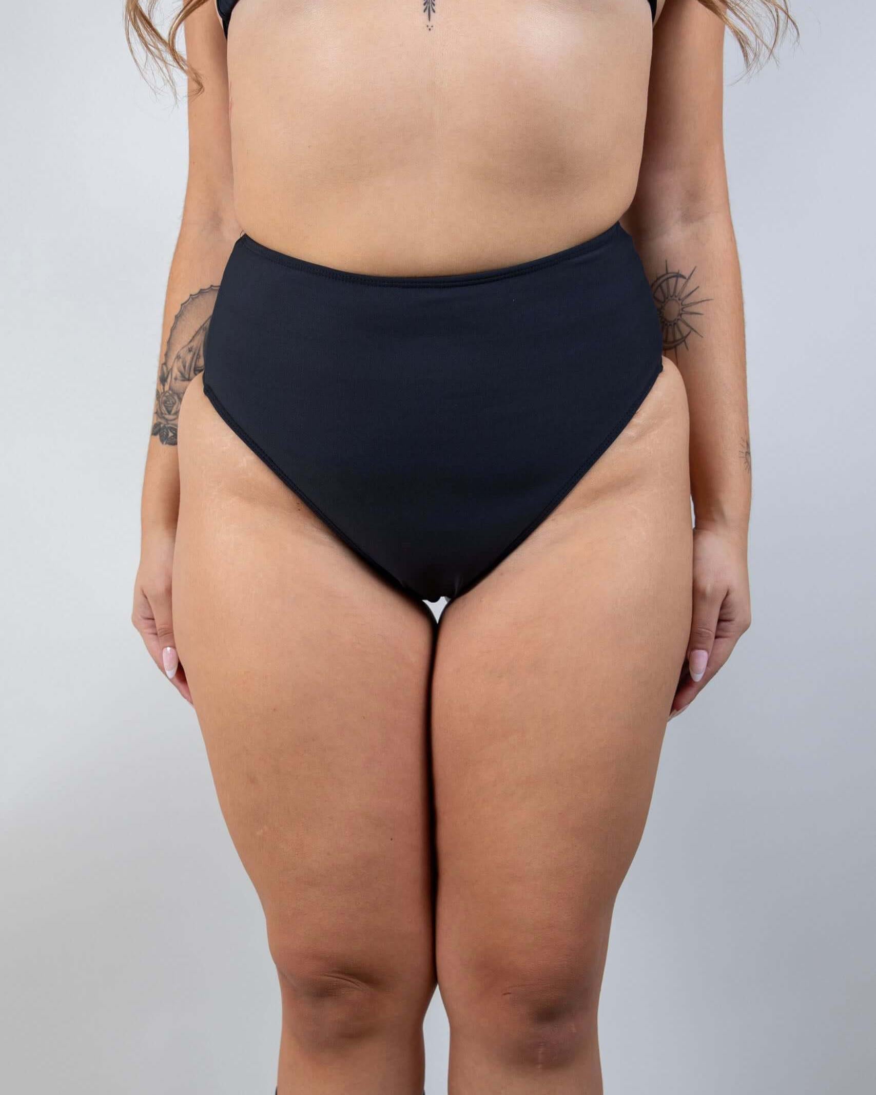 Amplify your rave game with our Midnight High Waisted Bikini Bottoms! The mesmerizing glittery black material and high waist cut will make you the star, while the full hip coverage and cheeky back ensure a comfy and flattering fit. Ideal for endless dancing.
