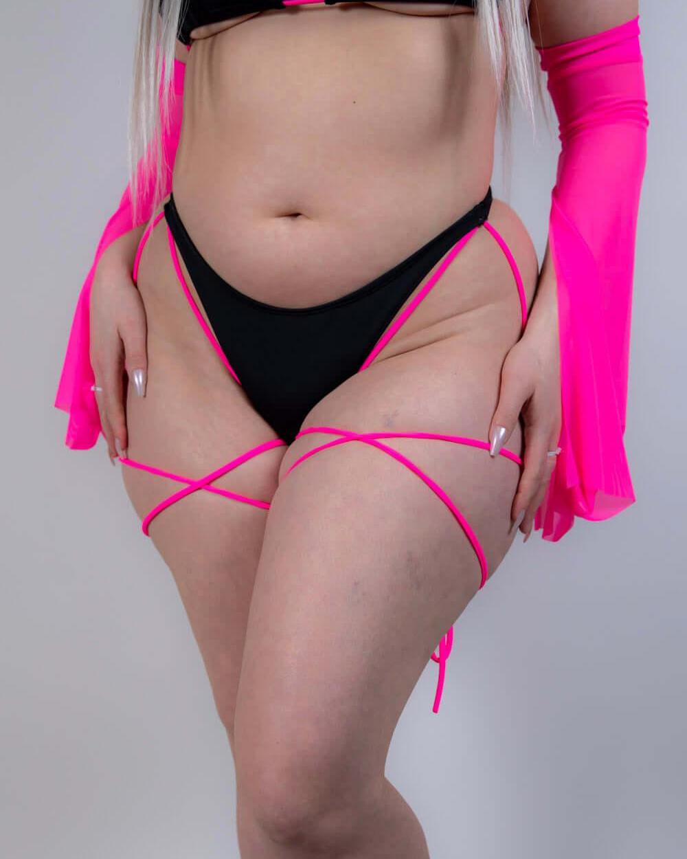 Be bold and ready to make a statement at festivals with Black and Hot Pink Strappy High Hip Bottoms! These bottoms offer high hip support and a one-of-a-kind strappy look, adding a playful touch to your outfit. Don't just blend in, take risks and stand out with these bottoms.