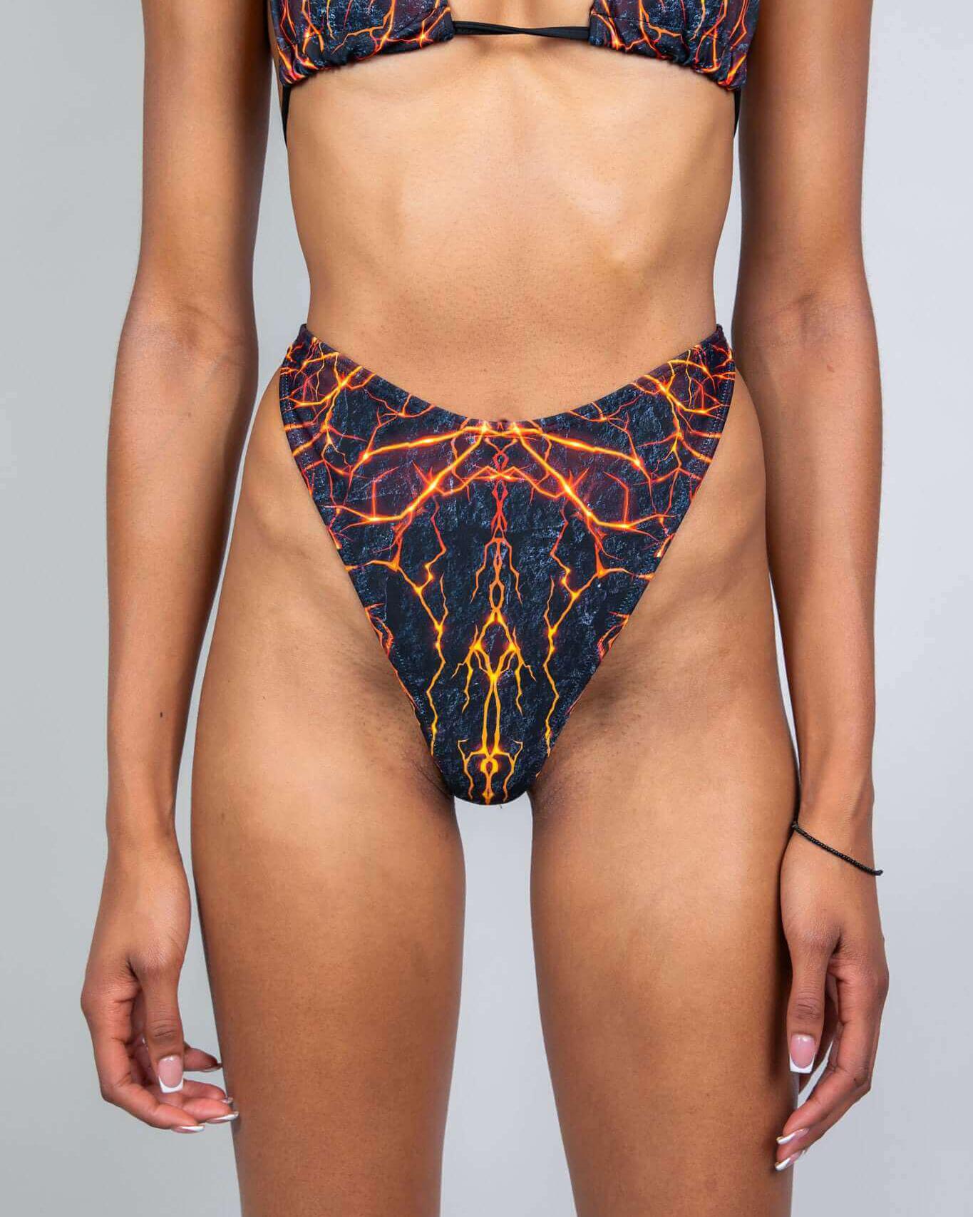 Get ready to turn up the heat in these Magma Retro Thong Bottoms! With their sexy design and vibrant lava rave print, you'll be the life of the party. So why settle for ordinary when you can rock these bottoms and unleash your inner firecracker?
