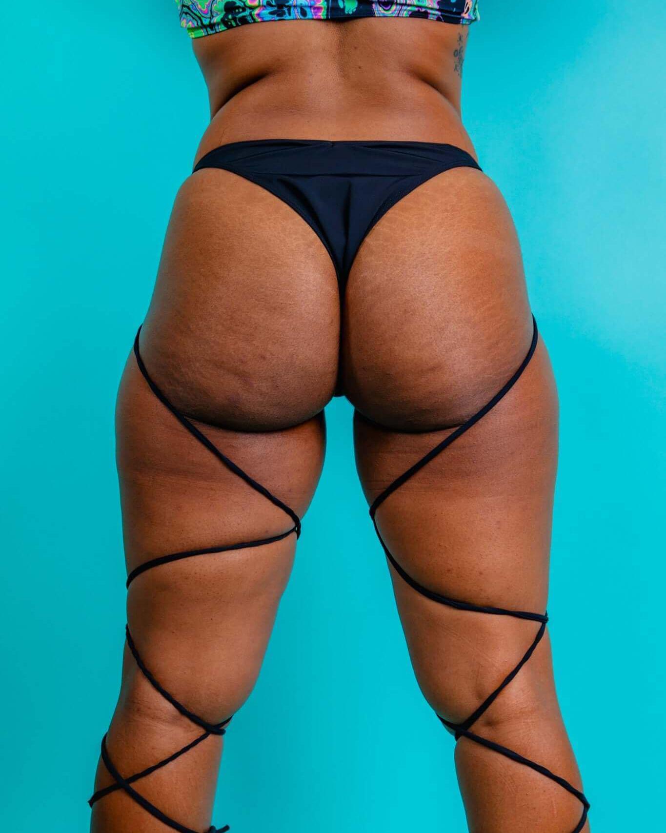 Get ready to turn heads and steal the show with our Matte Black Strappy High Hip Bottoms! These cheeky bottoms are the ultimate rave essential, adding a touch of sultry edge to your look. The strappy and layered design is both playful and captivating, giving you the confidence to take your night to the next level. Made on recycled material, these FRW Exclusive bottoms are not only stylish but also eco-friendly. The Brazilian cheeky cut and high hip style accentuate your curves in all the right places, while the soft and stretchy fabric ensures maximum comfort. Handmade with love in San Diego, CA, these bottoms come with a satisfaction guarantee and a lifetime warranty. So go ahead, unleash your inner party queen and dance the night away in style! Please note that due to varying screen display settings, the fabric color may appear slightly different in person. So, let your imagination run wild and get ready to slay the rave scene with our Matte Black Strappy High Hip Bottoms!