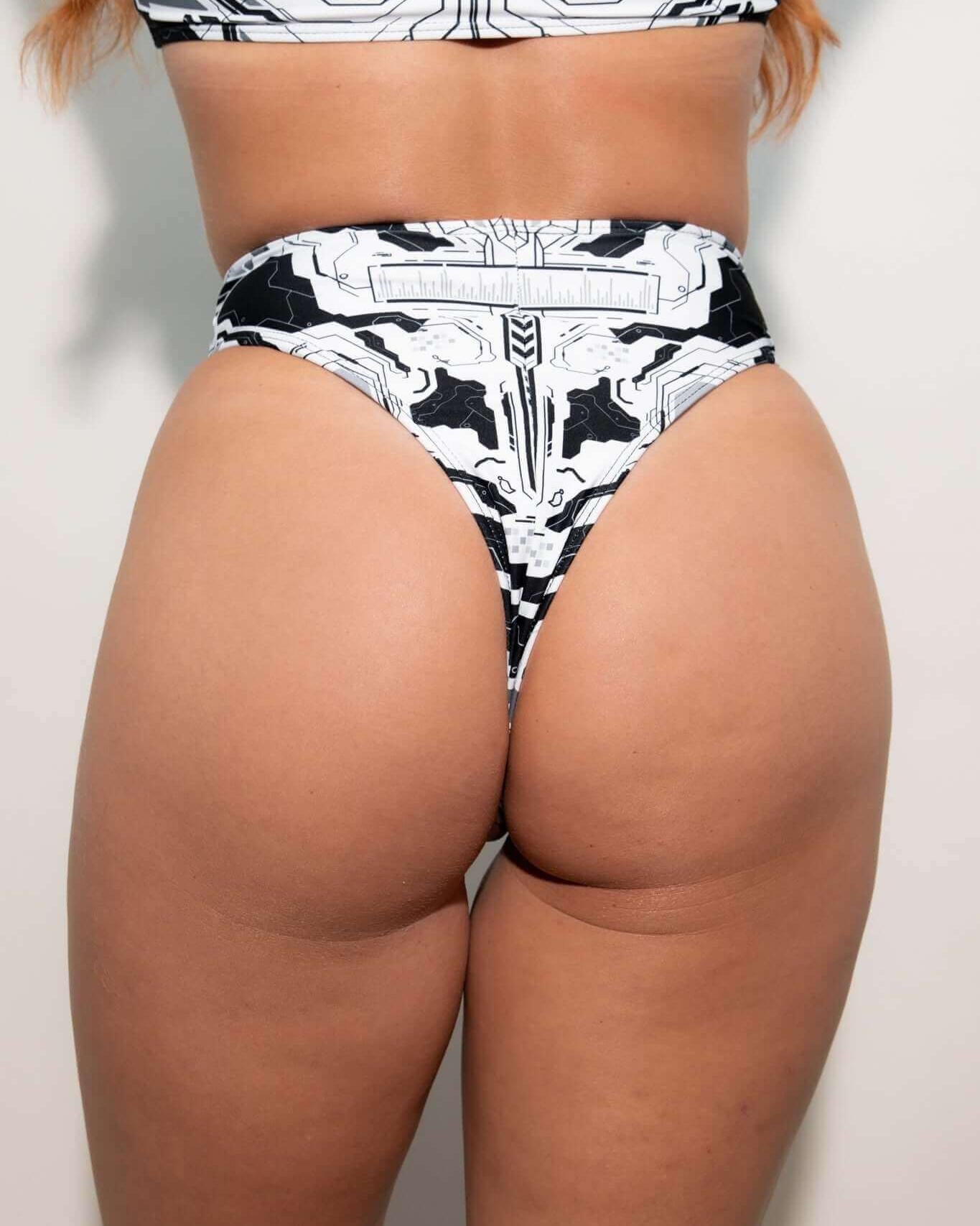 Make some noise for the Mechanoid Thong! All of the perks of our High-Waisted Brazilian bottoms but with more hip and more booty to show!