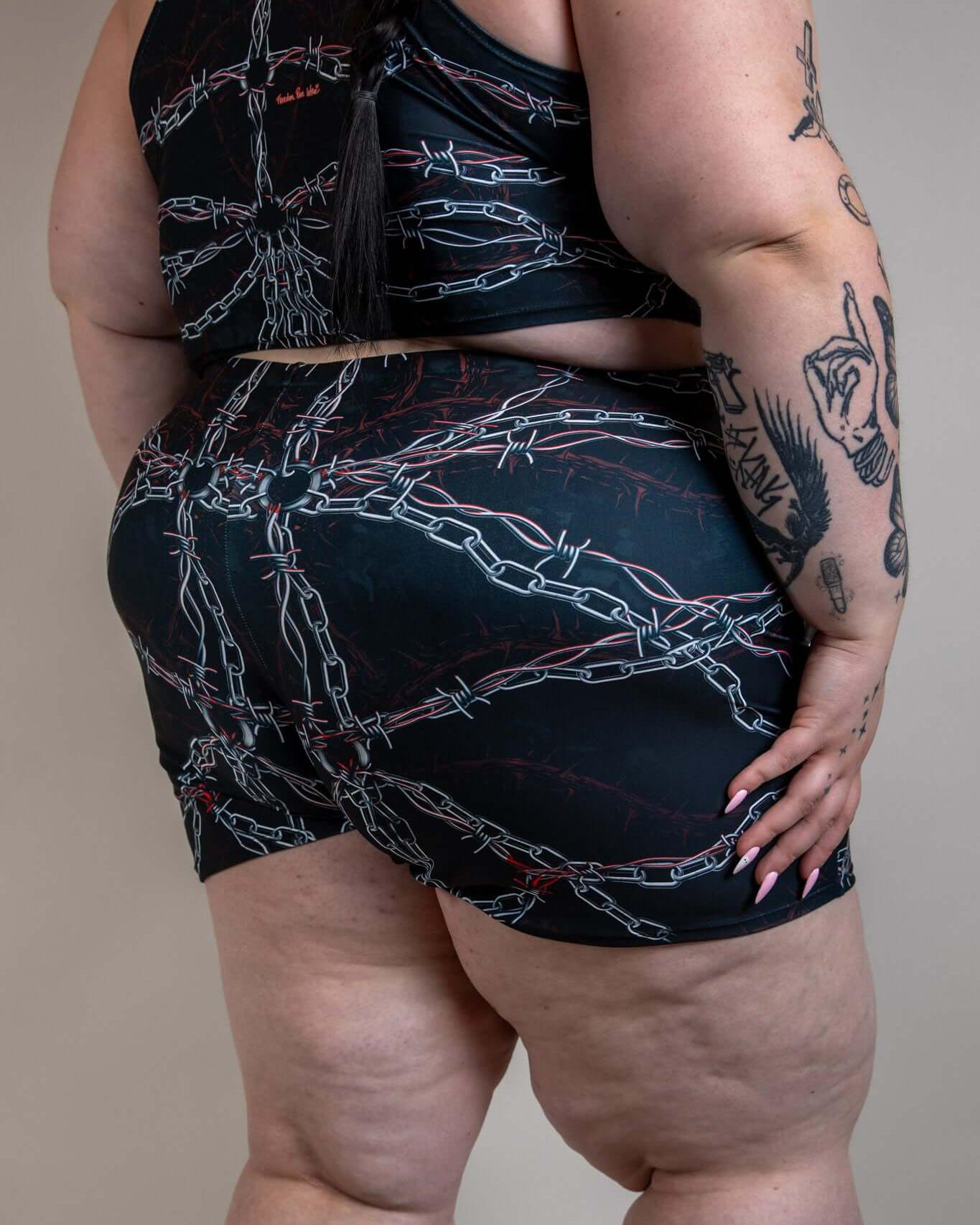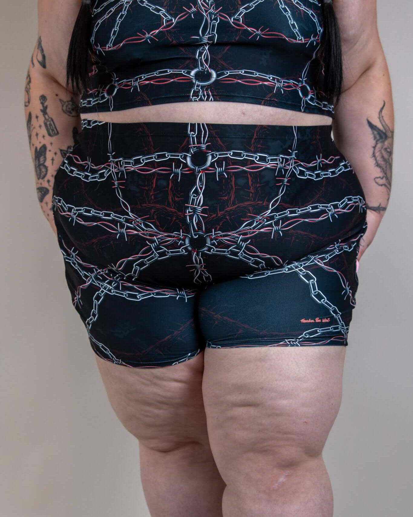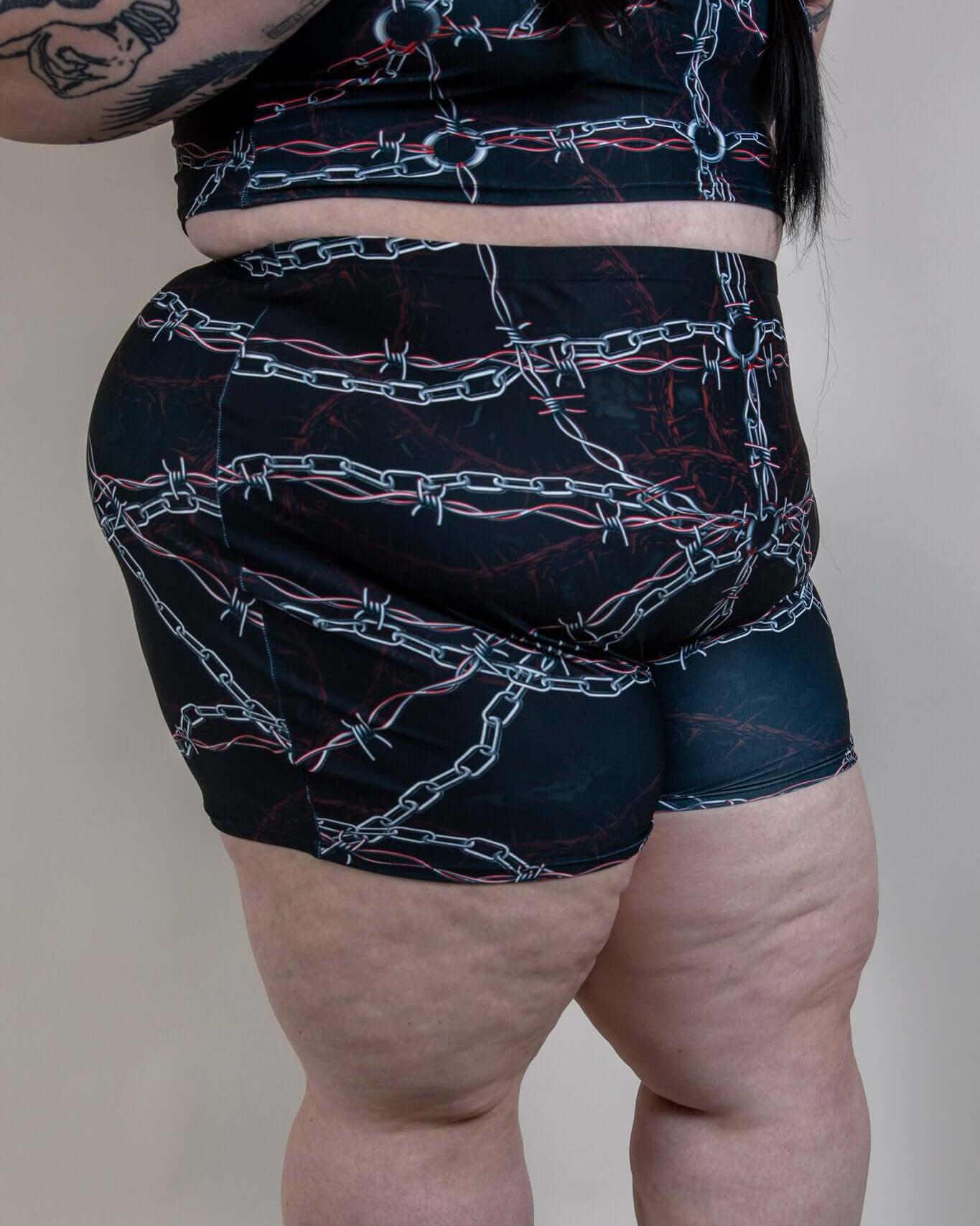 Elevate your raves with our Purgatory High Waist Shorts! Designed for more coverage and comfort, these shorts will keep you feeling confident and secure all night long. Don't let anything hold you back on the dance floor.