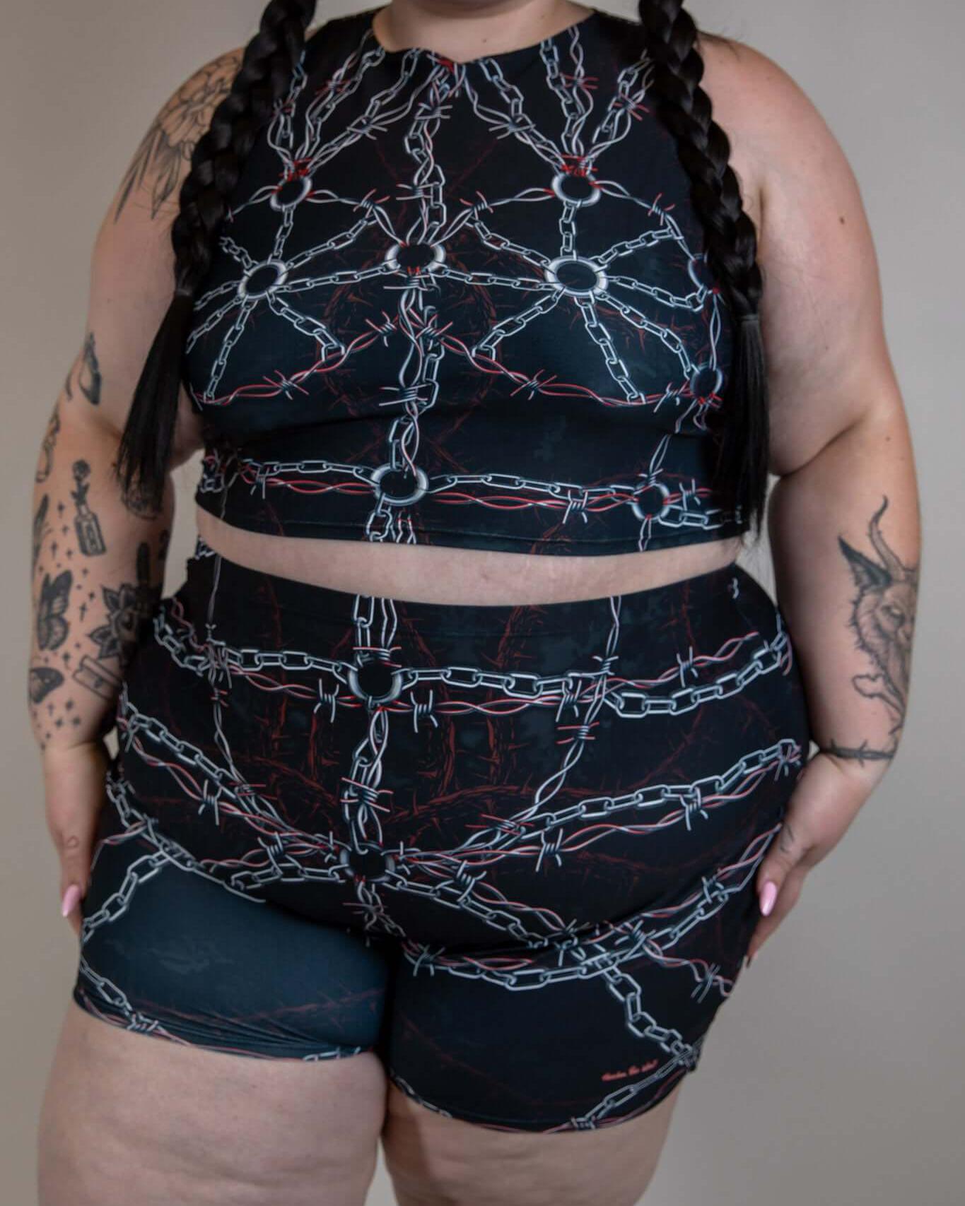 Introducing the Purgatory Crop Top, the perfect addition to your festival wardrobe! This crop top features sexy chain detailing that will make you stand out at raves and events.