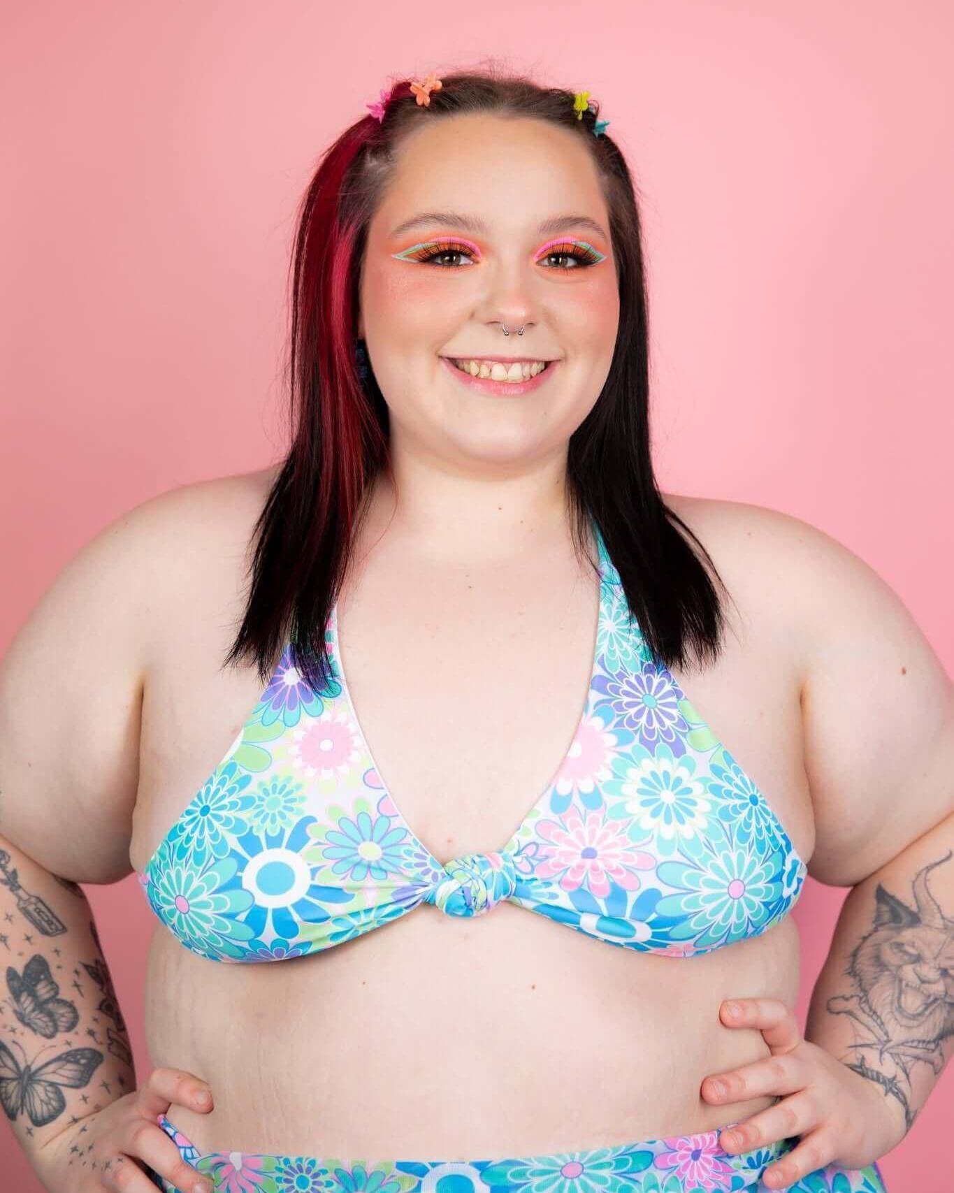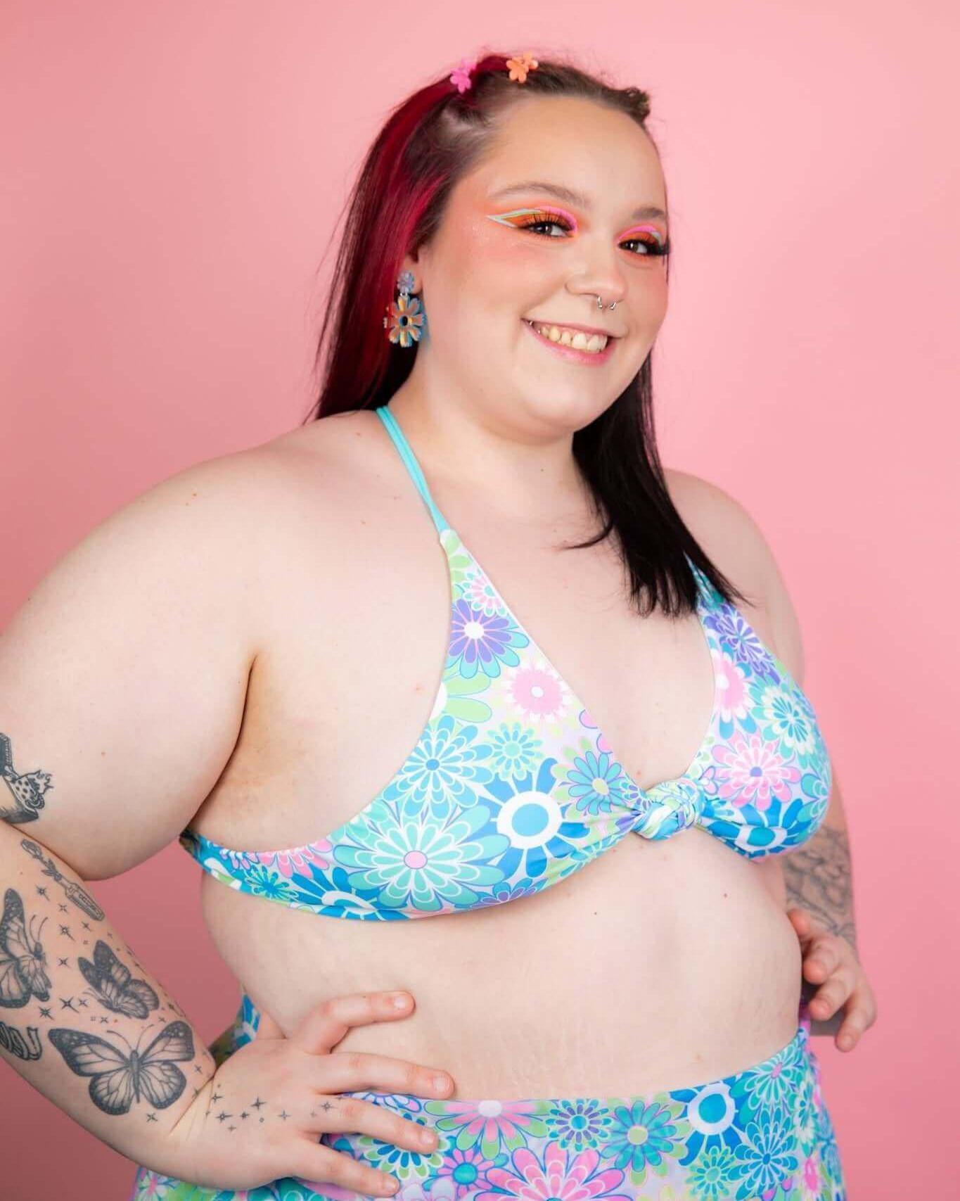 Introducing FRW's newest EDC-ready rave top, featuring a vibrant pastel floral print that's sure to make you stand out in any crowd. Made from soft and stretchy recycled fabric, it features ties around the neck for a comfortable, customizable fit. Plus, it's blacklight reactive, making it the ultimate addition to any EDC outfit!