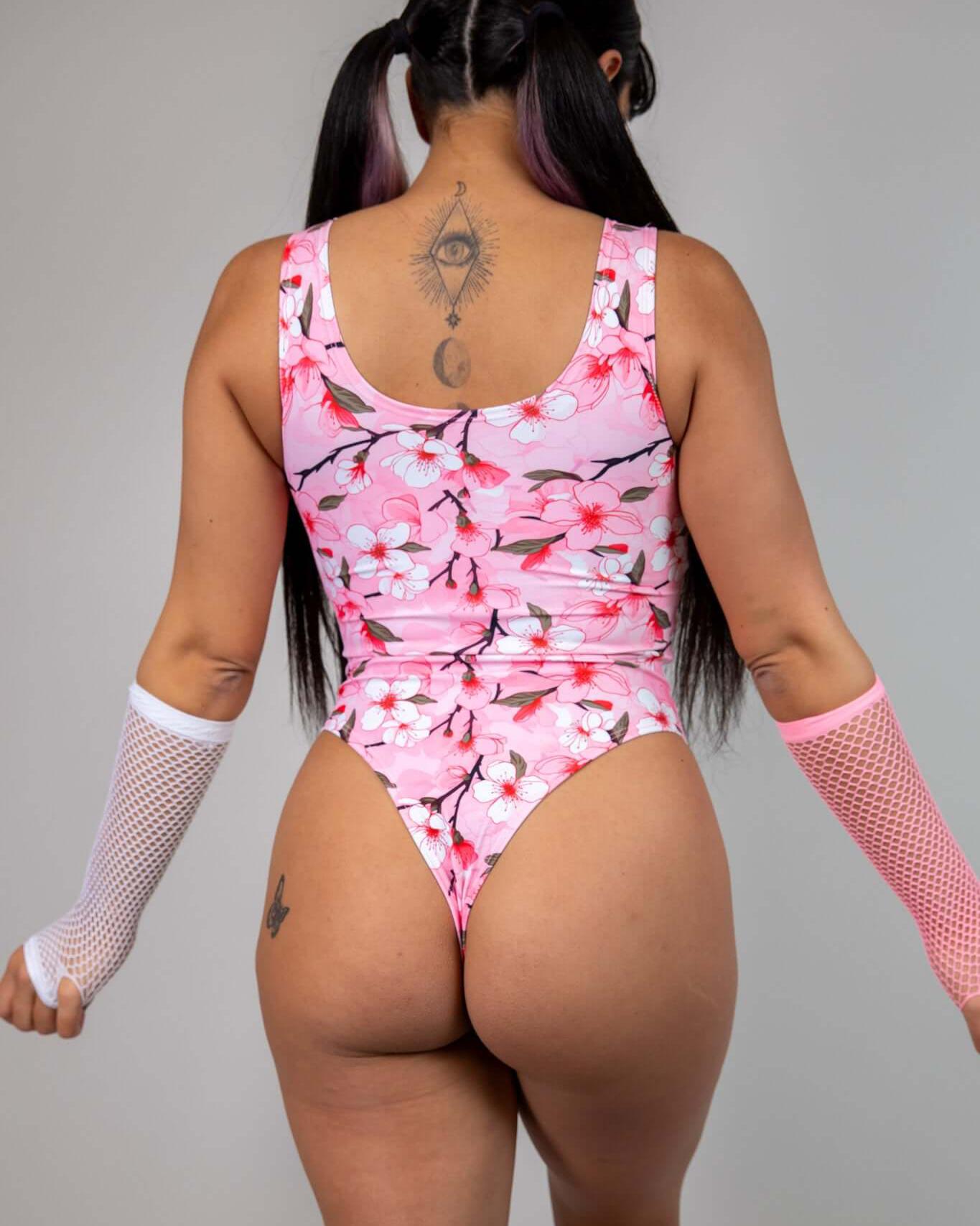 Discover the beauty of our Sakura Keyhole Bodysuit. This unique bodysuit features sexy cutouts, perfect for standing out at raves. Made for comfort and style, the Sakura Bodysuit is a must-have for any rave enthusiast. Be the center of attention in our stunning Sakura Bodysuit.