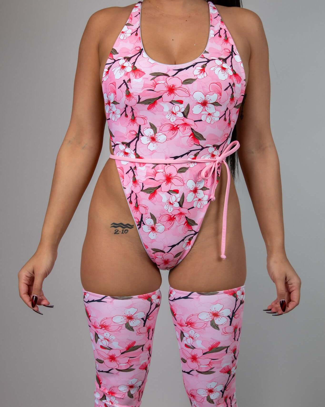 Experience the beauty and excitement of spring with our Sakura Temptation Cheeky One Piece. Made with vibrant cherry blossom designs, this rave outfit will make you stand out at any event. Embrace the floral vibes and dance the night away in this one of a kind piece.