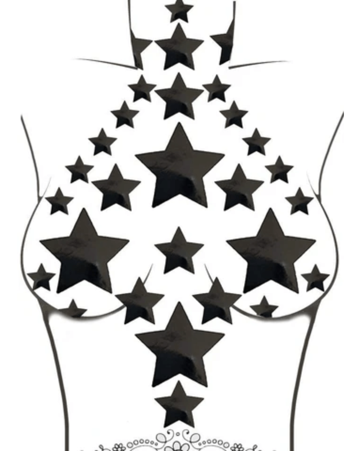 Did you love the freedom of choice, flow, and style of a 90’s sarong but never understand how the heck to tie them, especially with those itsy-bitsy diagrams on the tags? What were they, a tag for ants? Well your wish upon a lucky STAR has come true, because we’ve created something even more magical, flirty, and fabulous to leave everyone STARstruck and LOVing you! Neva Nude Nipztix Sticker Tops allow you to personalize your look and create your own perfect sticker crop top! Use your body as a canvas to paint your own holographic, reflective, or iridescent Starry Night, or illustrate that your self love shines bright in our I Heart U Tops. Complete with (4) Nipztix, (12) BodiStix, and a fairy boatload of Ministix, you’ll have enough product to create a magical look that will last for ages! Peep our pics and insta for inspo!