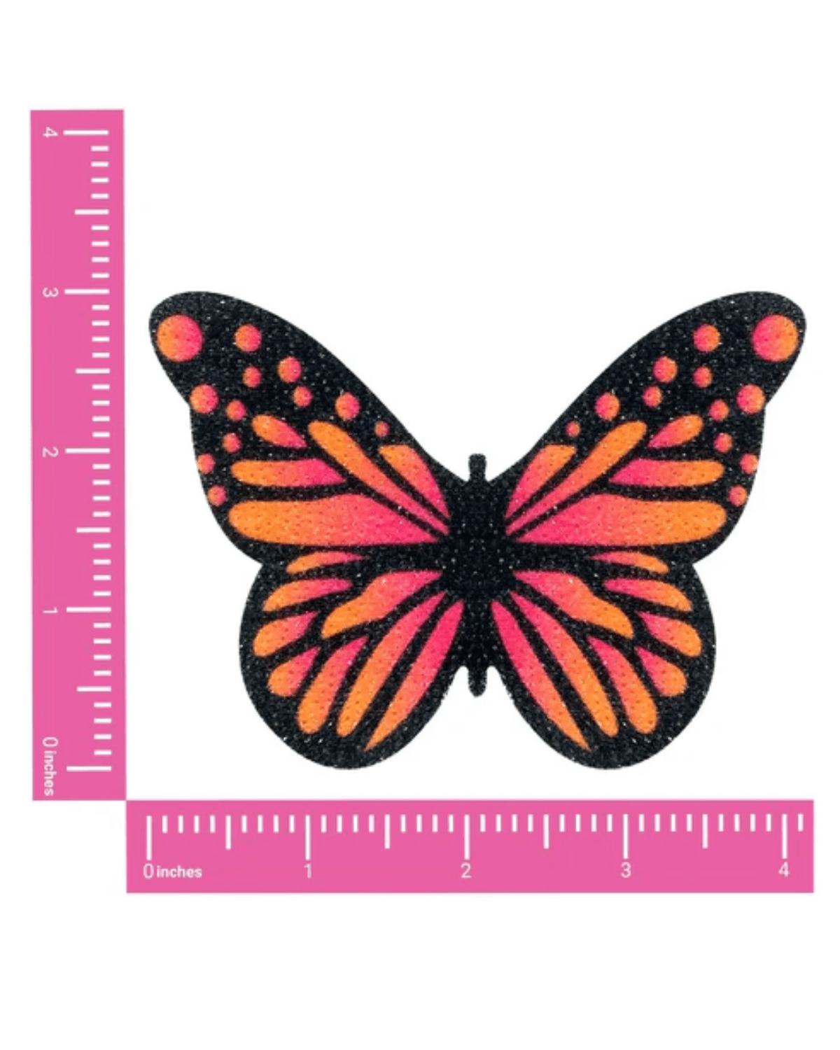 You'll be sure to attract a mate as you look bold and beautiful with these striking Pink to Orange Ombre Velvet Glitter Butterfly Nipztix by Neva Nude.