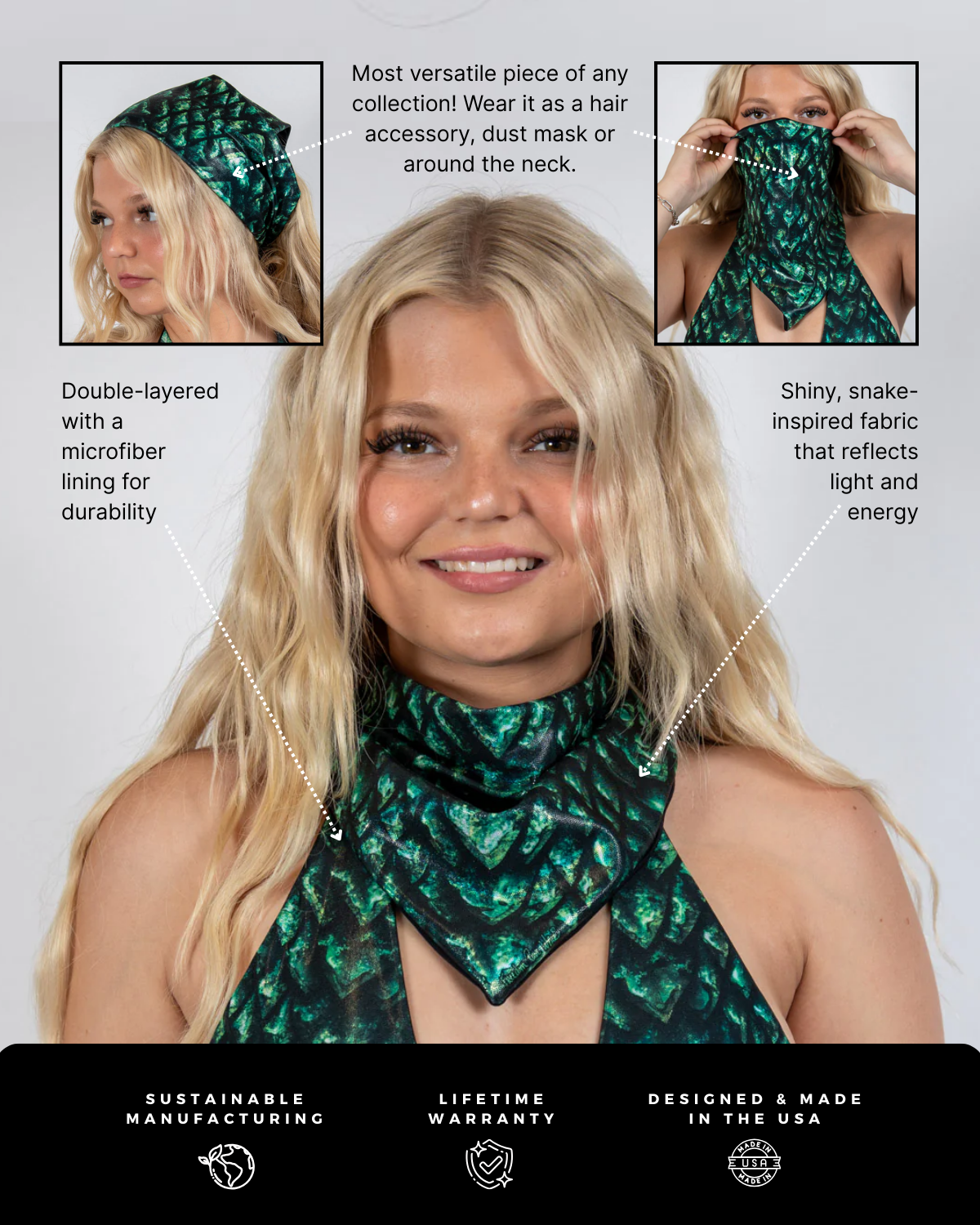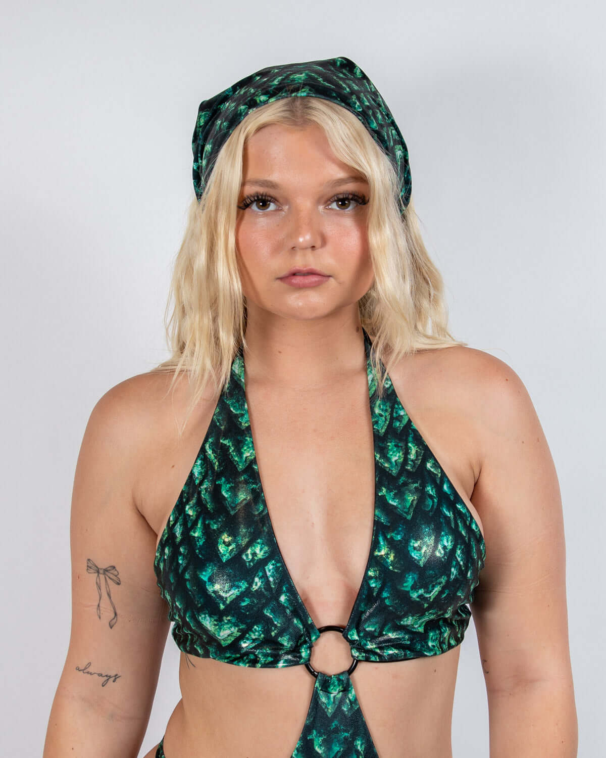 Unleash your inner beast with the Predator Bandana—where primal power meets rave energy. This fierce green-and-black scale print delivers major reptilian vibes, perfect for slaying every set from dusk till dawn. Whether worn around your neck, over your face, or tied to your fit, it’s the ultimate accessory for those who move like predators on the dance floor.