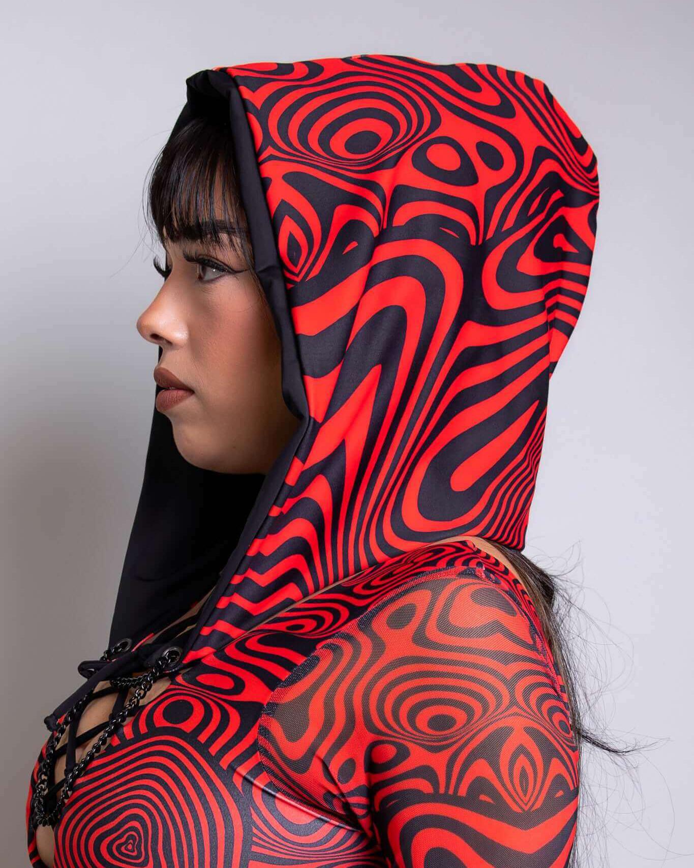 Don your look and get rave-ready with this Red Void Assassin Hood. Perfect for cyberpunk and cosplaying, this hood features a vibrant red hue to make a statement! So don your look and show off your edgy cyber-style.