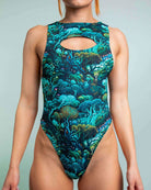 Get ready to rave in style with our Faewood Cut Out Sideboob Bodysuit! A twist on our best-selling bodysuit which features a high neck, high hip cut, thong back and sideboob exposure on each side of the chest. Different from our traditional sideboob bodysuit, this piece also has an oculus cutout on the chest for added exposure.