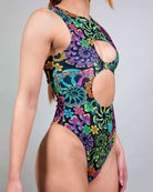 Get ready to stand out on the dance floor with our PsyBloom Keyhole Bodysuit!