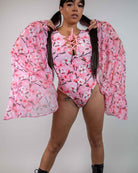 Experience divine comfort and style with our Sakura Goddess Bodysuit. The bell sleeves add a touch of elegance while the cherry blossom print exudes femininity. The lace up top adds a flirty element to this structured and figure-flattering piece. Embrace the goddess within and stand out in our unique and beautiful bodysuit.