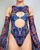 This piece has a similar fit to our High Neck bodysuit with a high hip, thong back bodysuit and sideboob coverage. The Keyhole Bodysuit features two cutouts at the chest connected with an O-Ring for added exposure and breathability.
