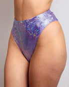 This shimmering lavender bottom is the perfect accessory for your next night out! Looking for a high-waisted style that's a little more exposed? The High-Waisted Brazilian Bottoms come up to the belly button and feature a high hip cut on the front with a cheeky back.