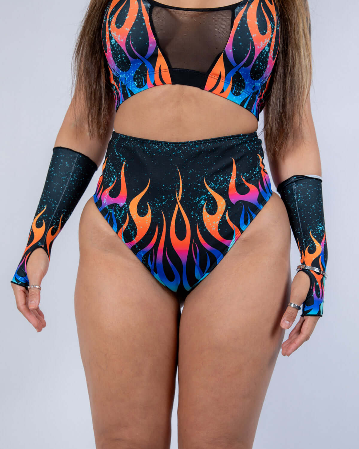 Style Tip: Pair with the Blaze V Free Top or Extra Mile Bralette for a head-to-toe fire look. Add mesh layers or flame arm sleeves to turn the heat all the way up.