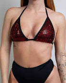 Every rave wardrobe needs a classic triangle bikini top! This minimalistic design features fully adjustable straps and cups that can be moved, tied and styled a number of ways.