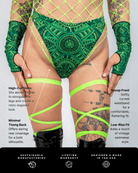 The Dominion Retro Thong isn’t here to play—it’s here to turn heads. With its flattering high-cut leg, cheeky fit, and fierce green tribal design, this piece is a bold nod to rave queens who move with power and pride. Whether you're dancing under lasers or serving looks in the desert, this thong brings fearless energy to every step.