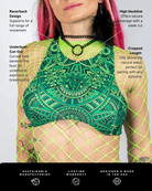 Elevate your rave look with the Dominion Teaser Top, featuring a bold halter neckline and full chest coverage with a dramatic underboob cut. This piece blends futuristic festival flair with sleek, functional design. Crafted from our signature eco-stretch fabric, this top holds you in while letting your fit breathe. The vivid Dominion print — complete with sneaky little dinosaurs hidden in the details — brings a high-energy, playful vibe to any outfit.