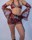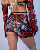The Lacewing High Waisted Shorts are unapologetically bold—designed for the ones who haunt the dance floor. This piece features our red lacewing print, a hypnotic and dangerous twist on butterfly wings with blood-drip symmetry and inky black contrast. The holographic finish catches the light just enough to keep all eyes on you, while the curve-hugging silhouette gives off serious main character energy.