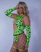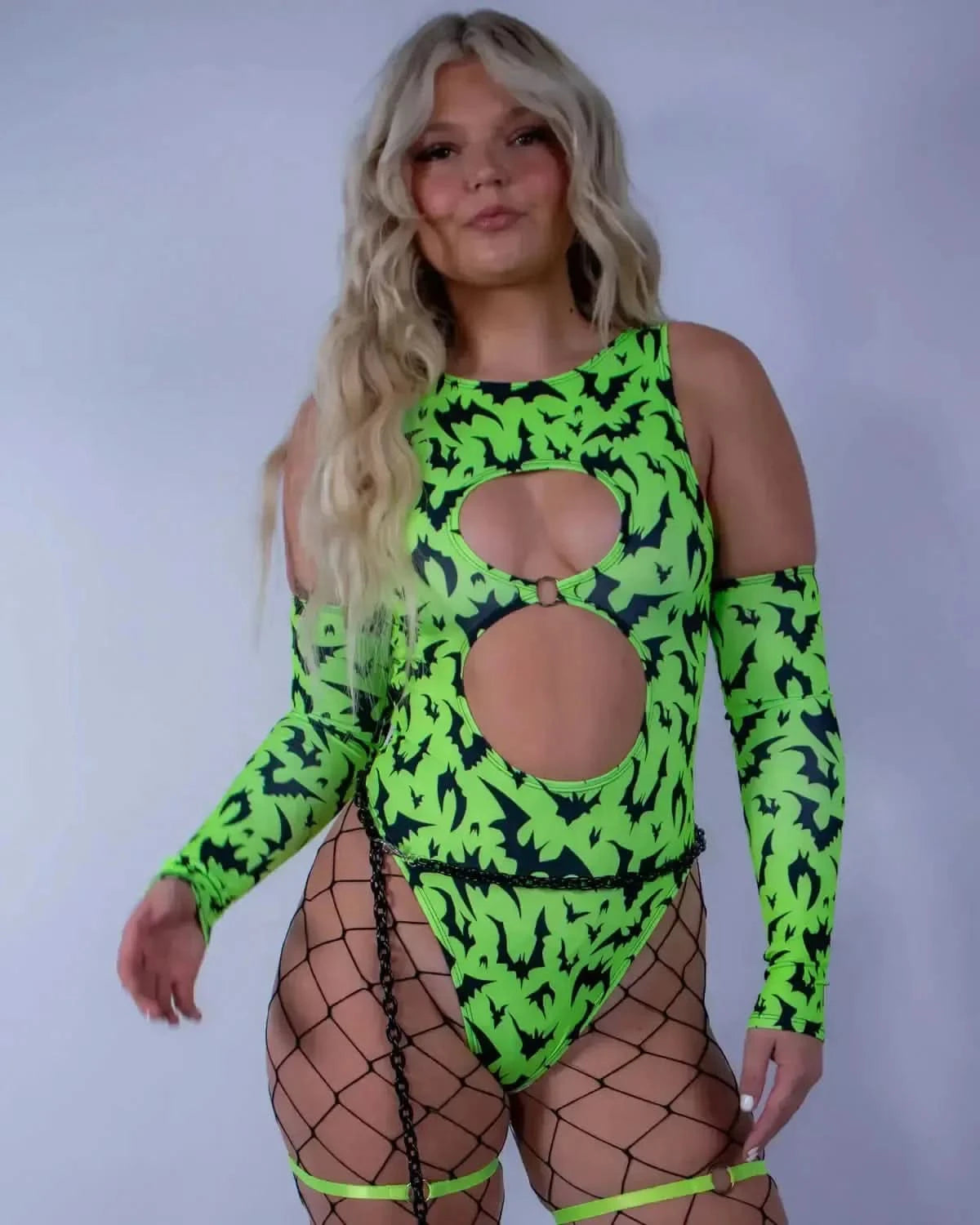Add a little bite to your fit with the OG Batty Arm Sleeves in UV Green. Featuring a bold, bat-infested print that glows under blacklight, these sleeves are a fierce addition to any rave-ready look. Made with stretchy, comfortable fabric that stays in place while you dance, pose, or cast spells.