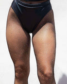 Small Diamond Rhinestone Fishnet Stockings - Black