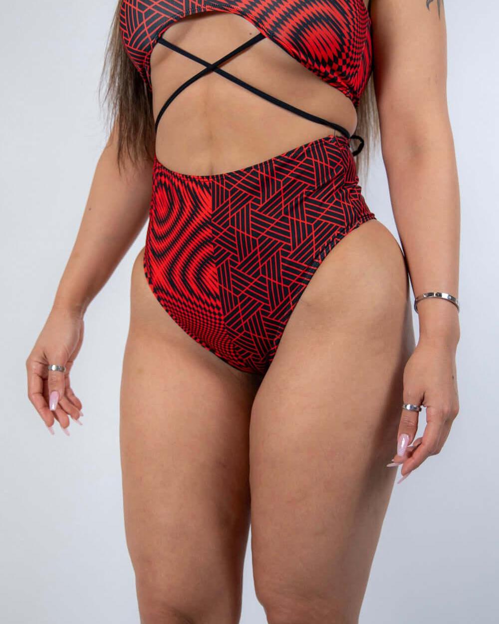 Unleash your inner sexiness with our Amplitude High Waisted Bikini Bottoms. These bottoms exude a dark and alluring vibe, while the red and black abstract design adds a touch of edginess. With front coverage and cheeky back style, you'll feel confident and sassy at any rave or pool party. Embrace your curves and make a statement!