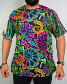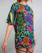 Get ready to party in style with our PsyBloom Oversized Tee! Perfect for raves, this unisex tee features a playful and trippy mushroom print. Stand out and spread good vibes with this unique shirt!