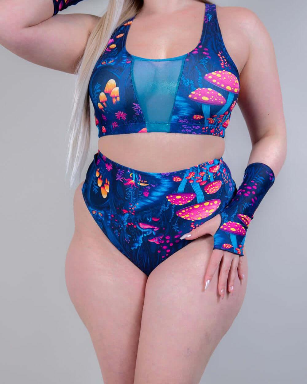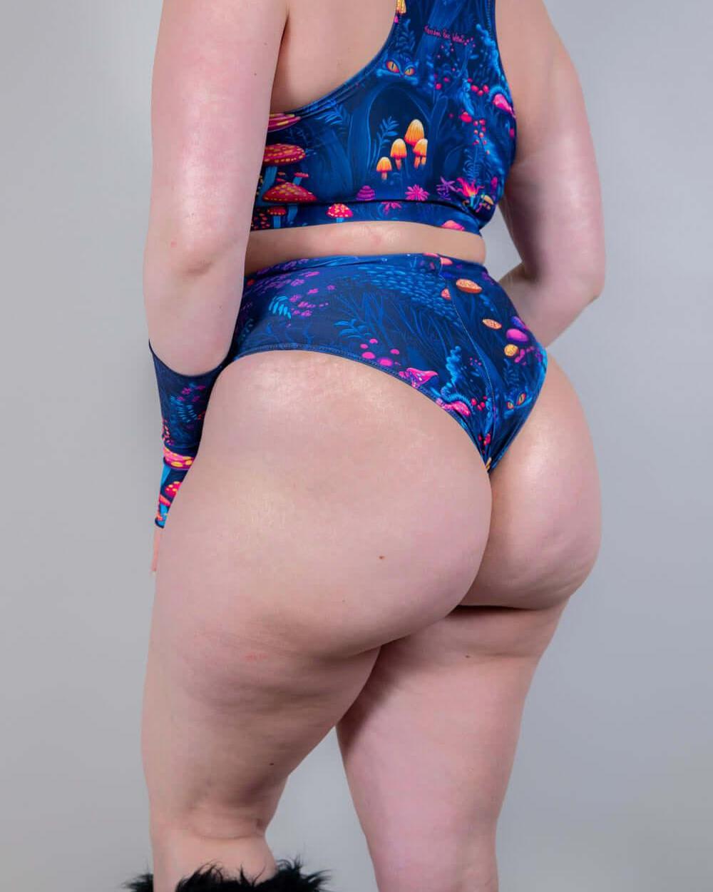Unleash your inner wild side with our Wildwood High Waisted Bikini Bottoms! Featuring a cute Alice in Wonderland themed print, these fan favorite bottoms provide full coverage on the front and a cheeky backside for the perfect blend of comfort and style. Don't miss out on this must-have for your rave wardrobe!