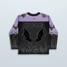 For the ones who are out all night, bringing adorable yet slightly unsettling vibes to the function, this one's for you. This piece features a shadowy graveyard print across the torso, with eerie bare trees, wrought iron fencing and bats silhouetted against a black backdrop. Lavender shoulders bring contrast to the dark base, giving it that perfect blend of cute and creepy.